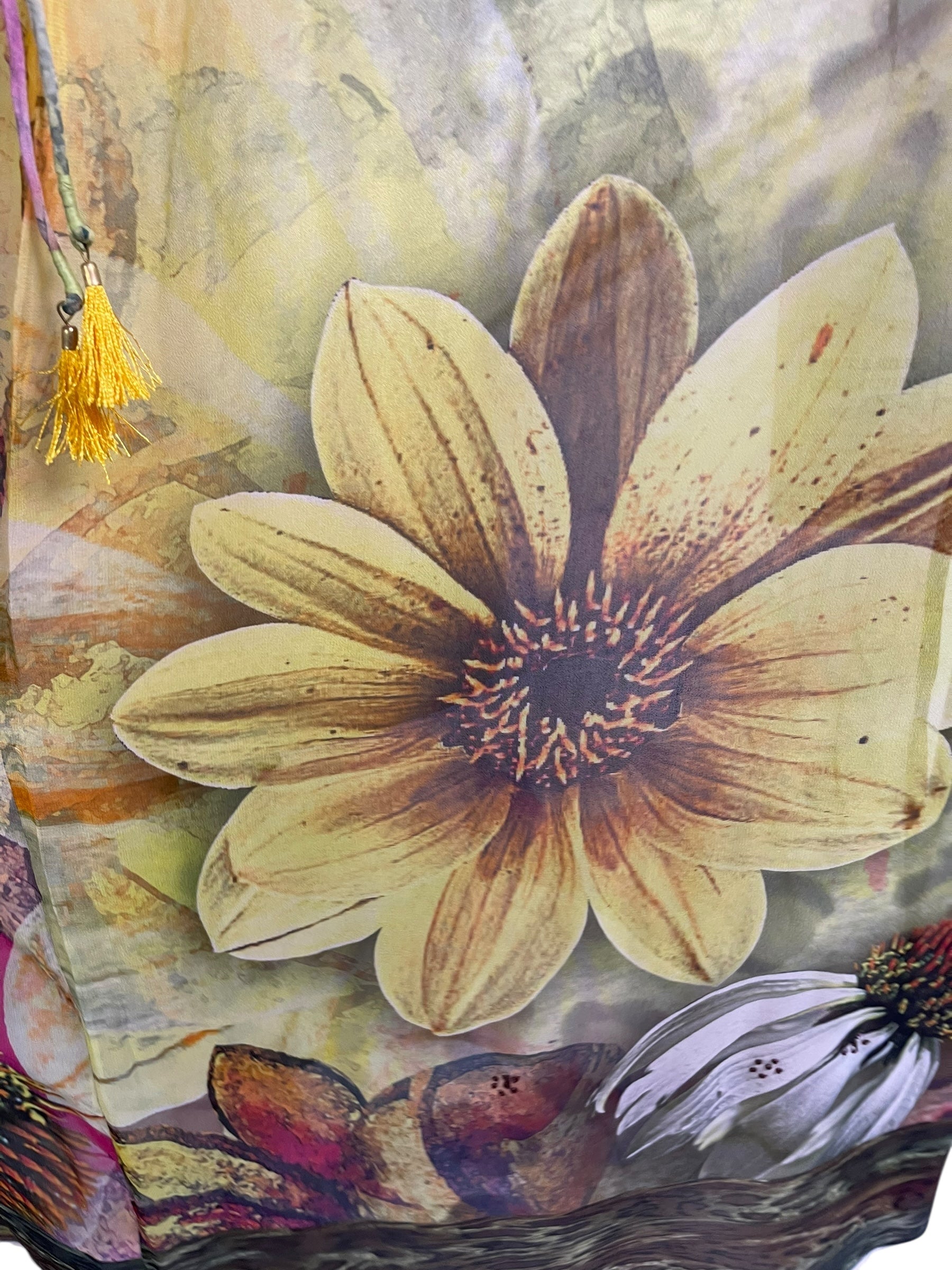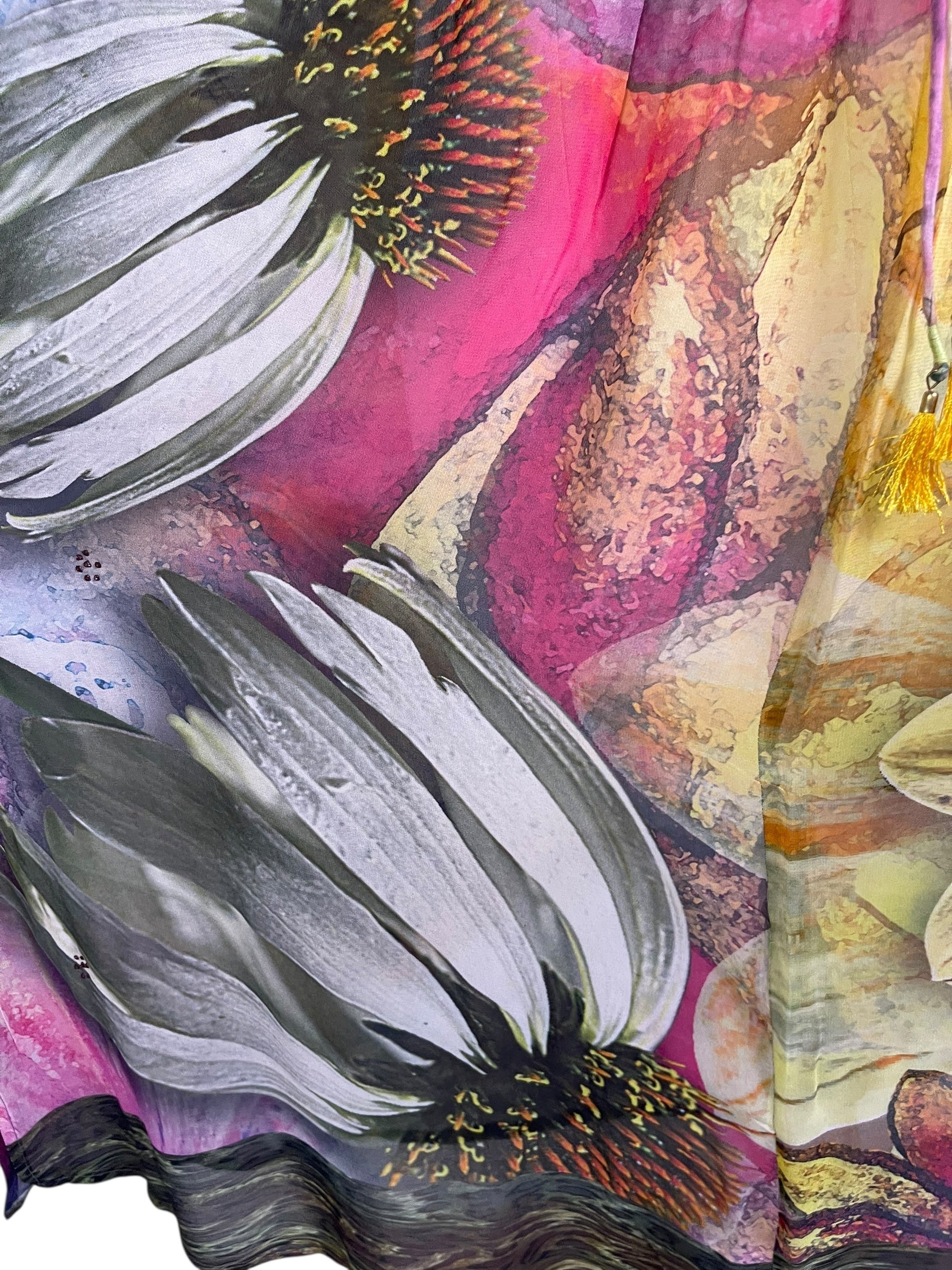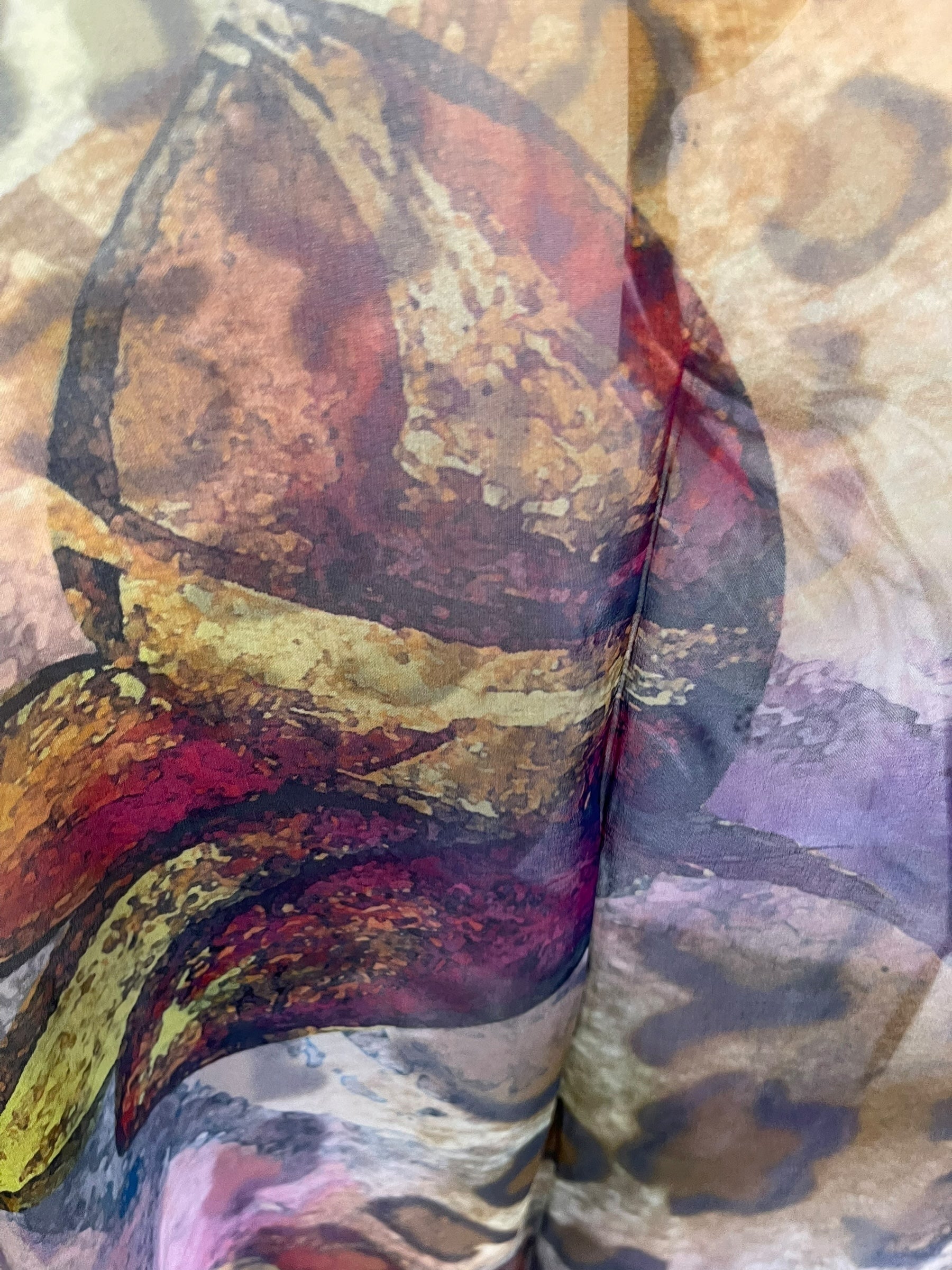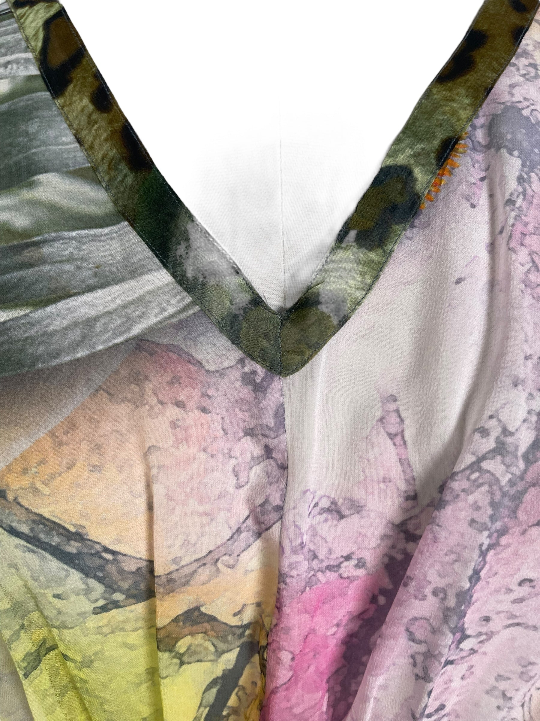 In Eastern philosophy, an Avatar is an incarnation that teaches how to evolve virtues of the past into the present. The Pure Upcycled Silk Avatar Collection is made from vintage pure silk saris, chosen and worn by women in the past to celebrate their lives.If you look very closely, you will see that the silks in this collection show some of the character of their previous incarnations through the appliqués that have been lovingly applied to bring new life to the fabric. This piece is a reminder that we are part of a collective journey to which we all add a little something.