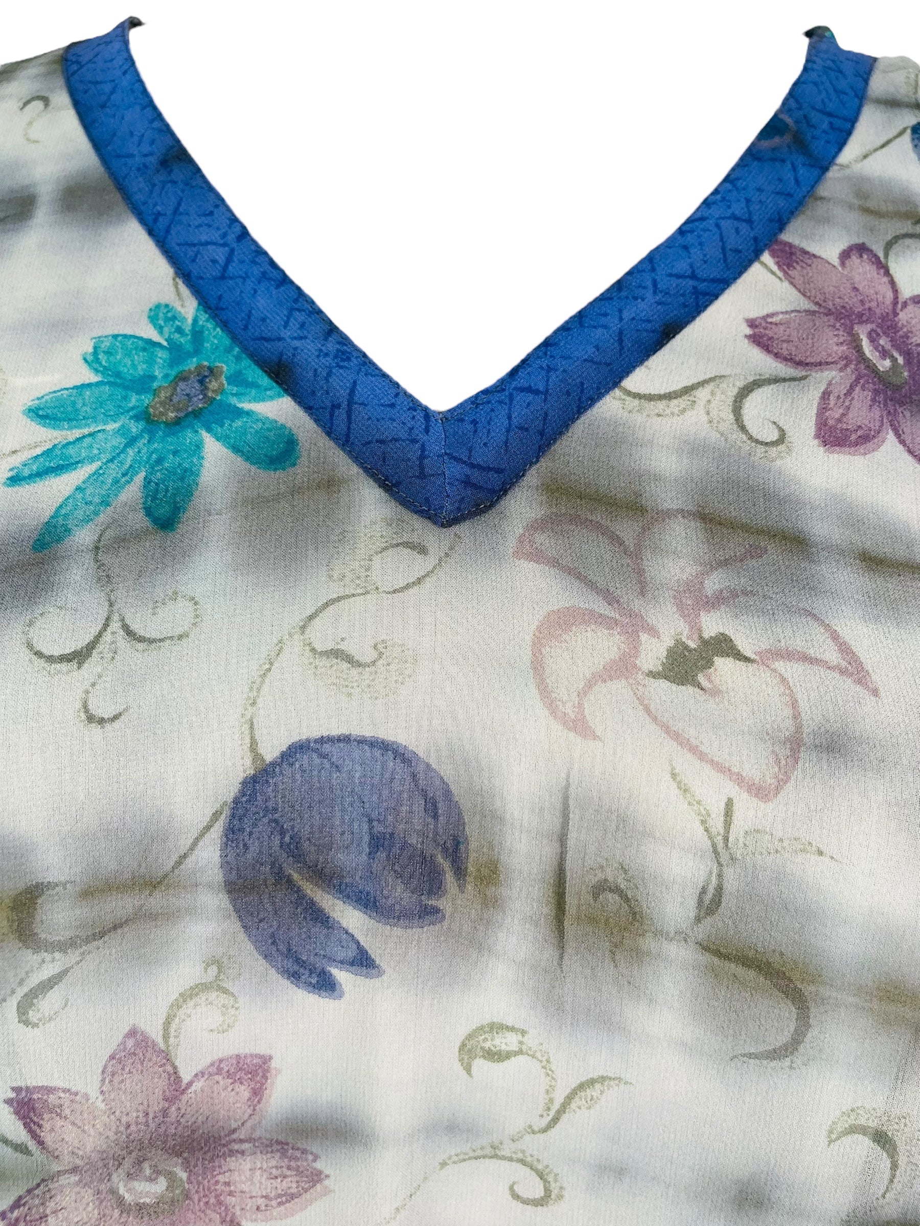 In Eastern philosophy, an Avatar is an incarnation that teaches how to evolve virtues of the past into the present. The Pure Upcycled Silk Avatar Collection is made from vintage pure silk saris, chosen and worn by women in the past to celebrate their lives.If you look very closely, you will see that the silks in this collection show some of the character of their previous incarnations through the appliqués that have been lovingly applied to bring new life to the fabric. This piece is a reminder that we are part of a collective journey to which we all add a little something.