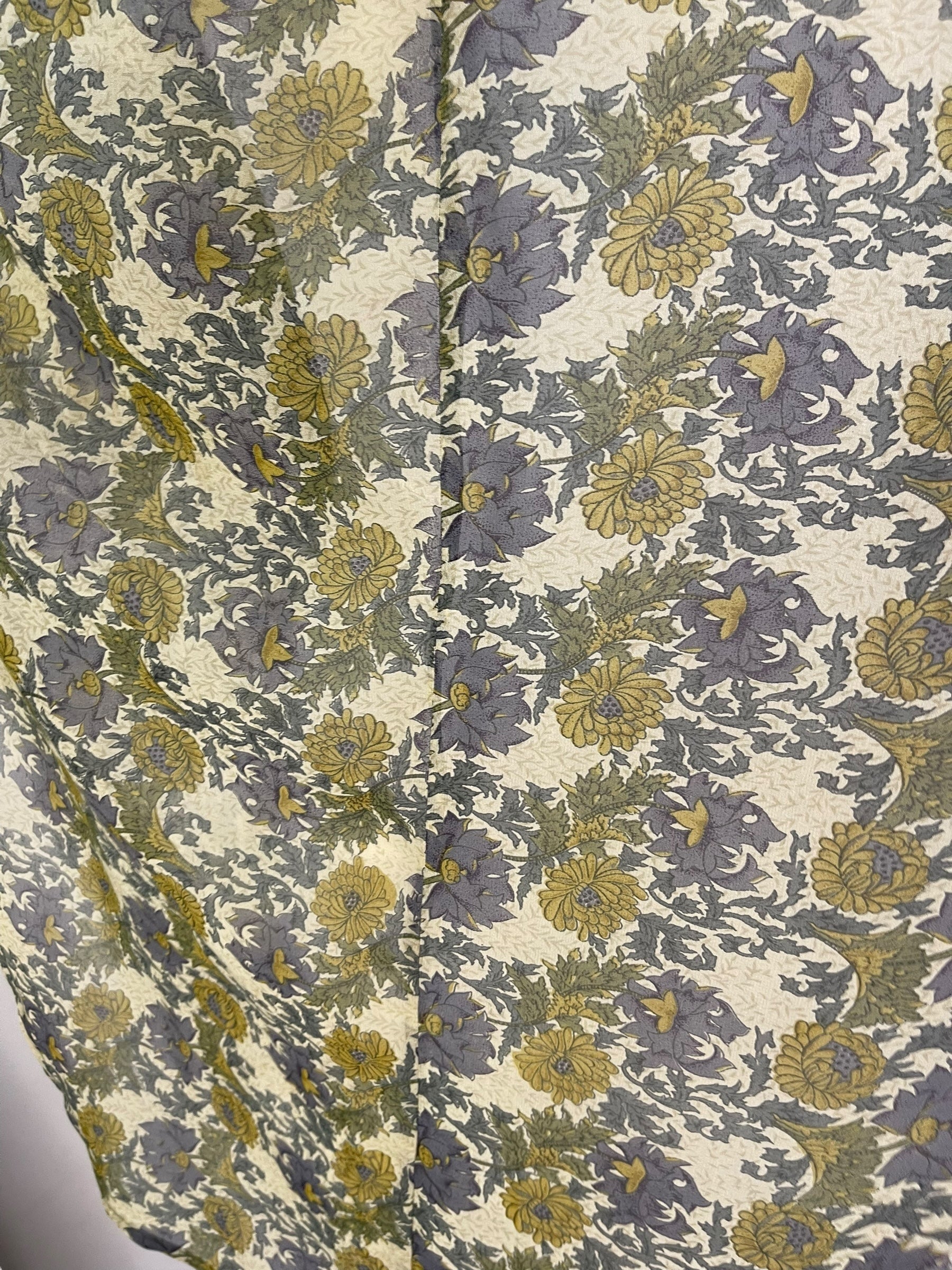 If you look very closely, you will see that the silks in this collection show some of the character of their previous incarnations through the appliqués that have been lovingly applied to bring new life to the fabric. This piece is a reminder that we are part of a collective journey to which we all add a little something.