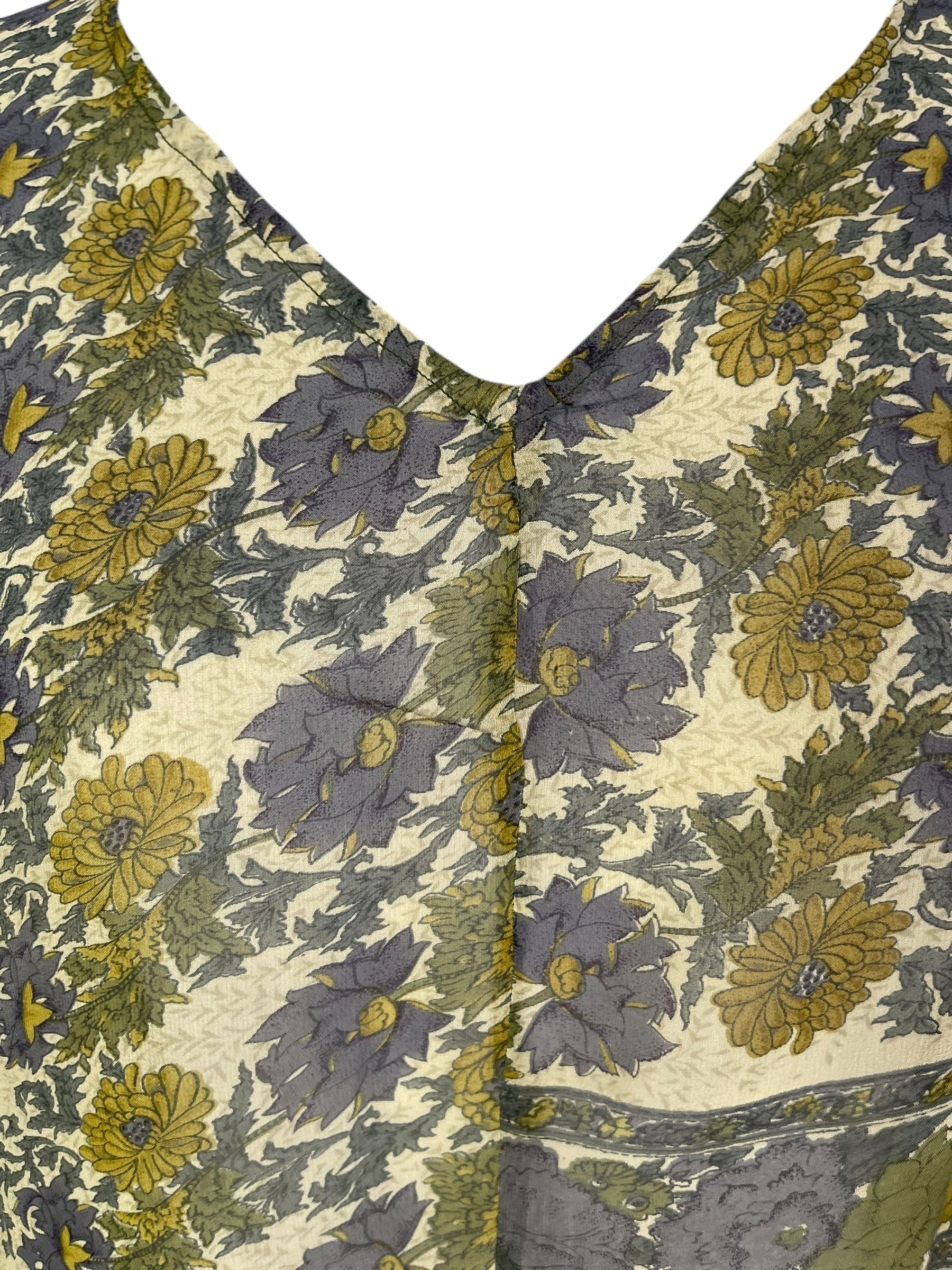 In Eastern philosophy, an Avatar is an incarnation that teaches how to evolve virtues of the past into the present. The Pure Upcycled Silk Avatar Collection is made from vintage pure silk saris, chosen and worn by women in the past to celebrate their lives.If you look very closely, you will see that the silks in this collection show some of the character of their previous incarnations through the appliqués that have been lovingly applied to bring new life to the fabric. This piece is a reminder that we are part of a collective journey to which we all add a little something.
