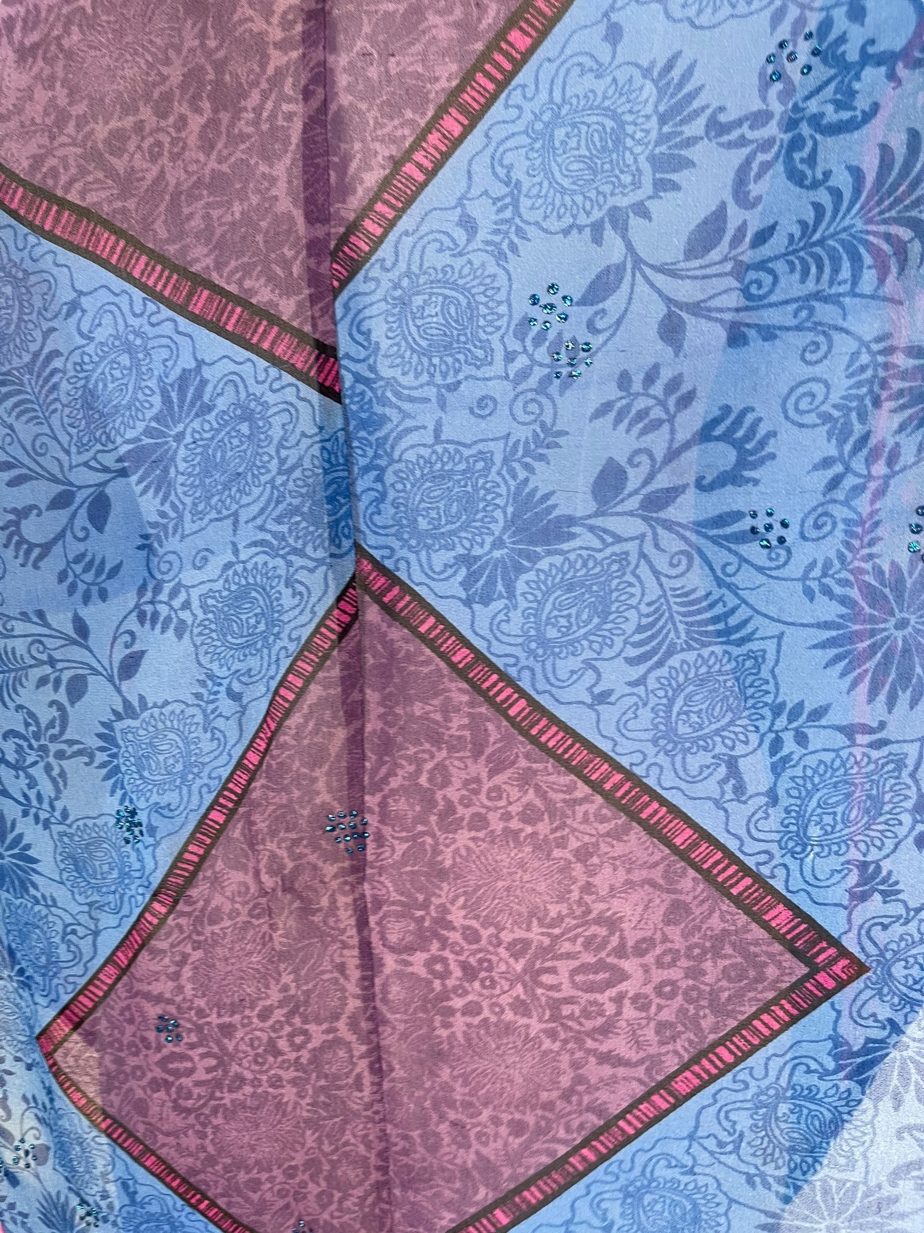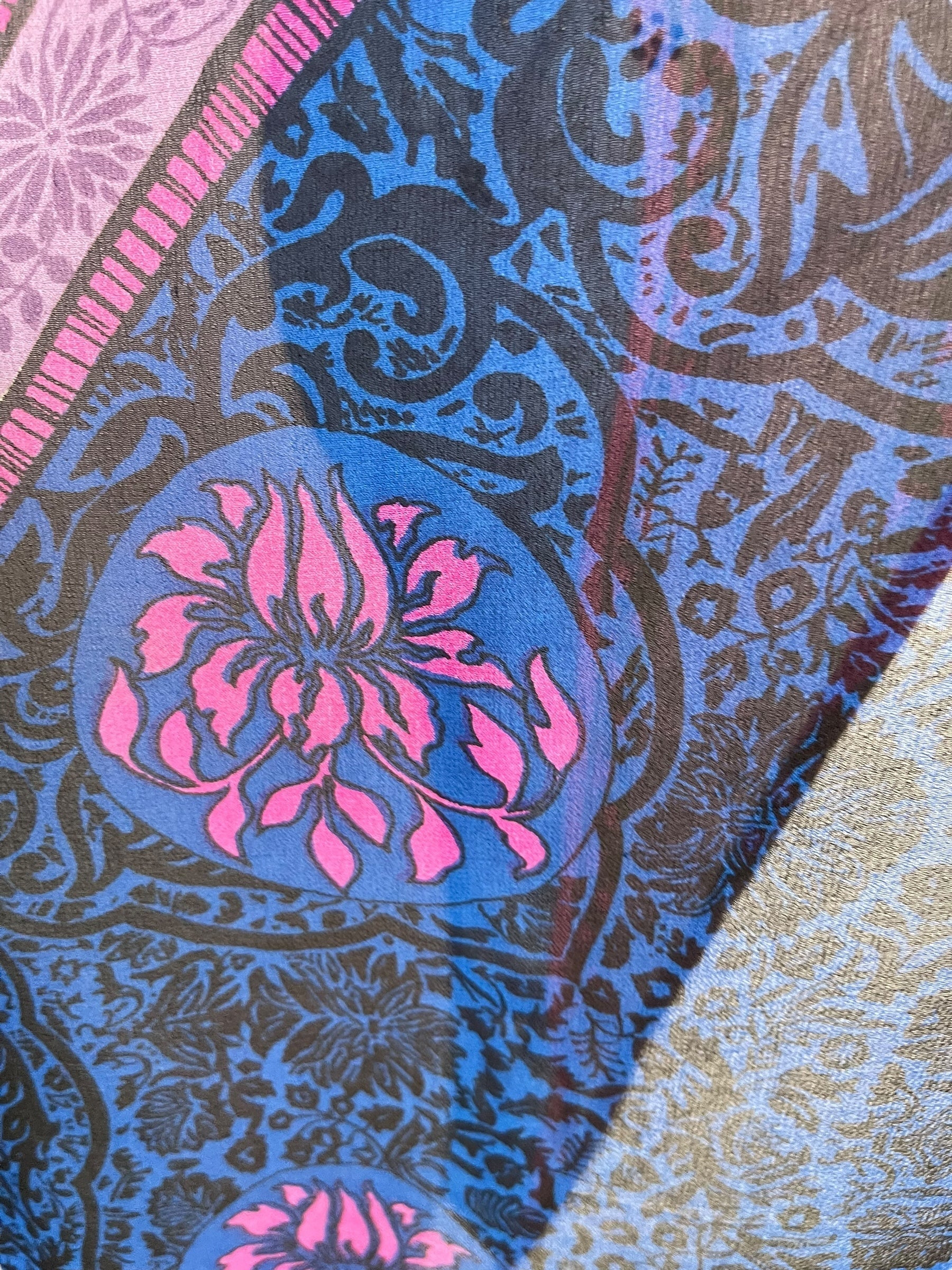 In Eastern philosophy, an Avatar is an incarnation that teaches how to evolve virtues of the past into the present. The Pure Upcycled Silk Avatar Collection is made from vintage pure silk saris, chosen and worn by women in the past to celebrate their lives.If you look very closely, you will see that the silks in this collection show some of the character of their previous incarnations through the appliqués that have been lovingly applied to bring new life to the fabric. This piece is a reminder that we are part of a collective journey to which we all add a little something.