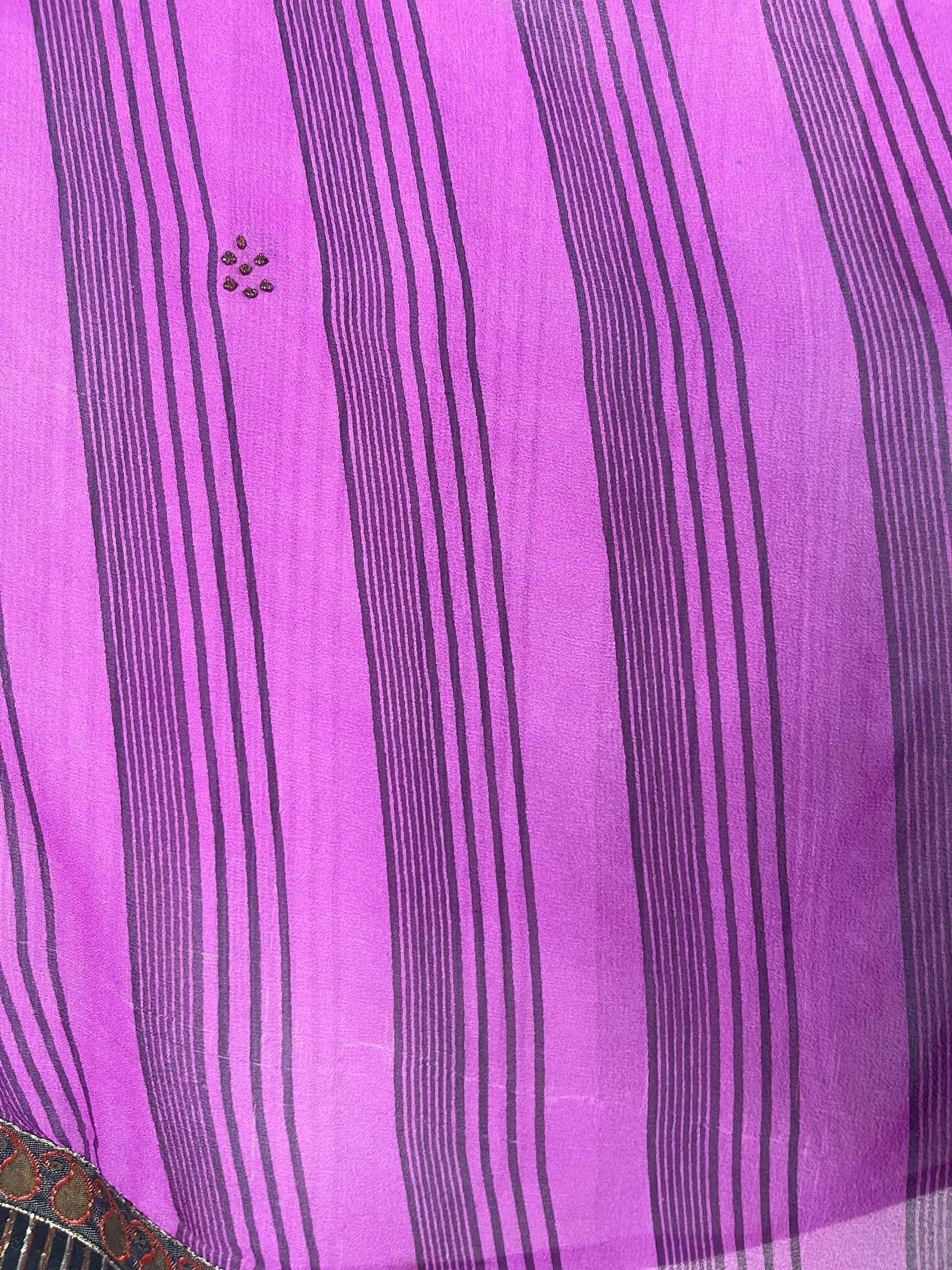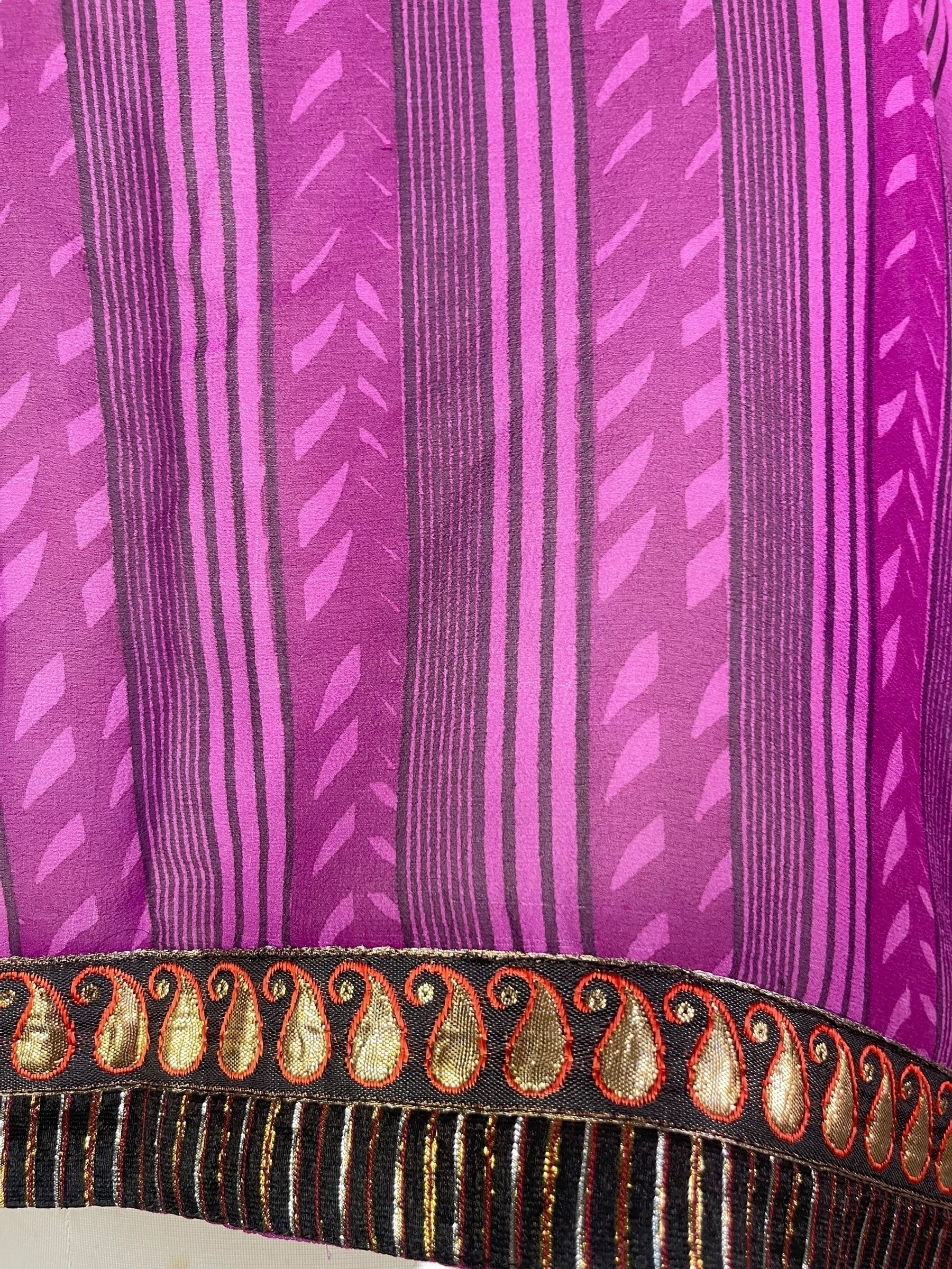 In Eastern philosophy, an Avatar is an incarnation that teaches how to evolve virtues of the past into the present. The Pure Upcycled Silk Avatar Collection is made from vintage pure silk saris, chosen and worn by women in the past to celebrate their lives.If you look very closely, you will see that the silks in this collection show some of the character of their previous incarnations through the appliqués that have been lovingly applied to bring new life to the fabric. This piece is a reminder that we are part of a collective journey to which we all add a little something.