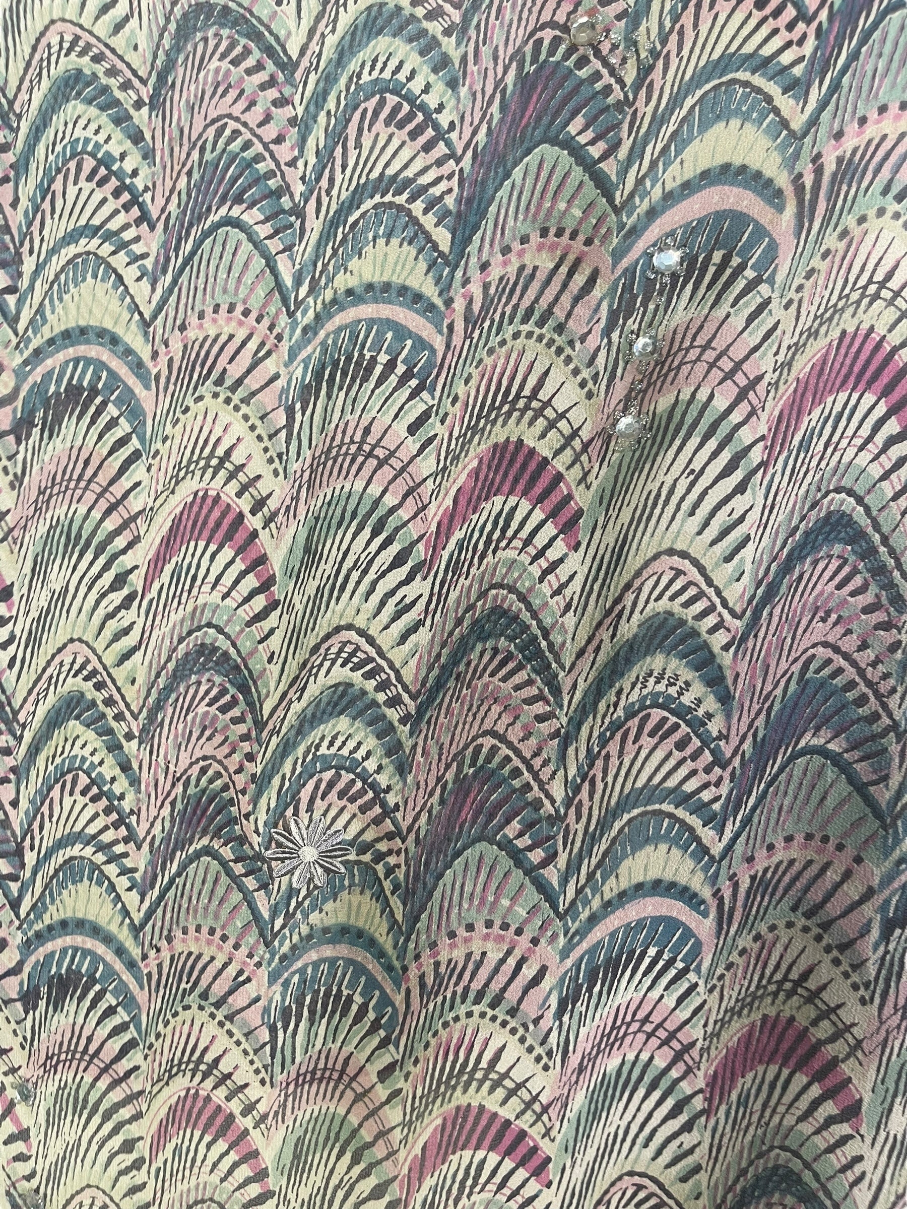 In Eastern philosophy, an Avatar is an incarnation that teaches how to evolve virtues of the past into the present. The Pure Upcycled Silk Avatar Collection is made from vintage pure silk saris, chosen and worn by women in the past to celebrate their lives.If you look very closely, you will see that the silks in this collection show some of the character of their previous incarnations through the appliqués that have been lovingly applied to bring new life to the fabric. This piece is a reminder that we are part of a collective journey to which we all add a little something.