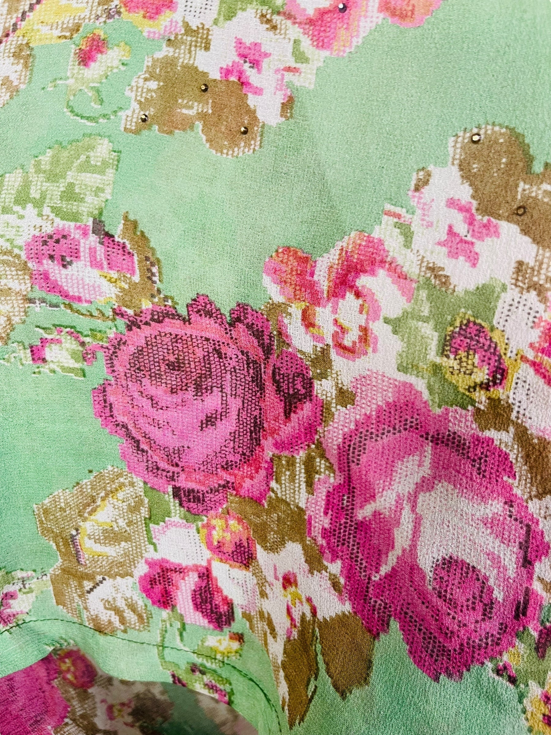 In Eastern philosophy, an Avatar is an incarnation that teaches how to evolve virtues of the past into the present. The Pure Upcycled Silk Avatar Collection is made from vintage pure silk saris, chosen and worn by women in the past to celebrate their lives.If you look very closely, you will see that the silks in this collection show some of the character of their previous incarnations through the appliqués that have been lovingly applied to bring new life to the fabric. This piece is a reminder that we are part of a collective journey to which we all add a little something.