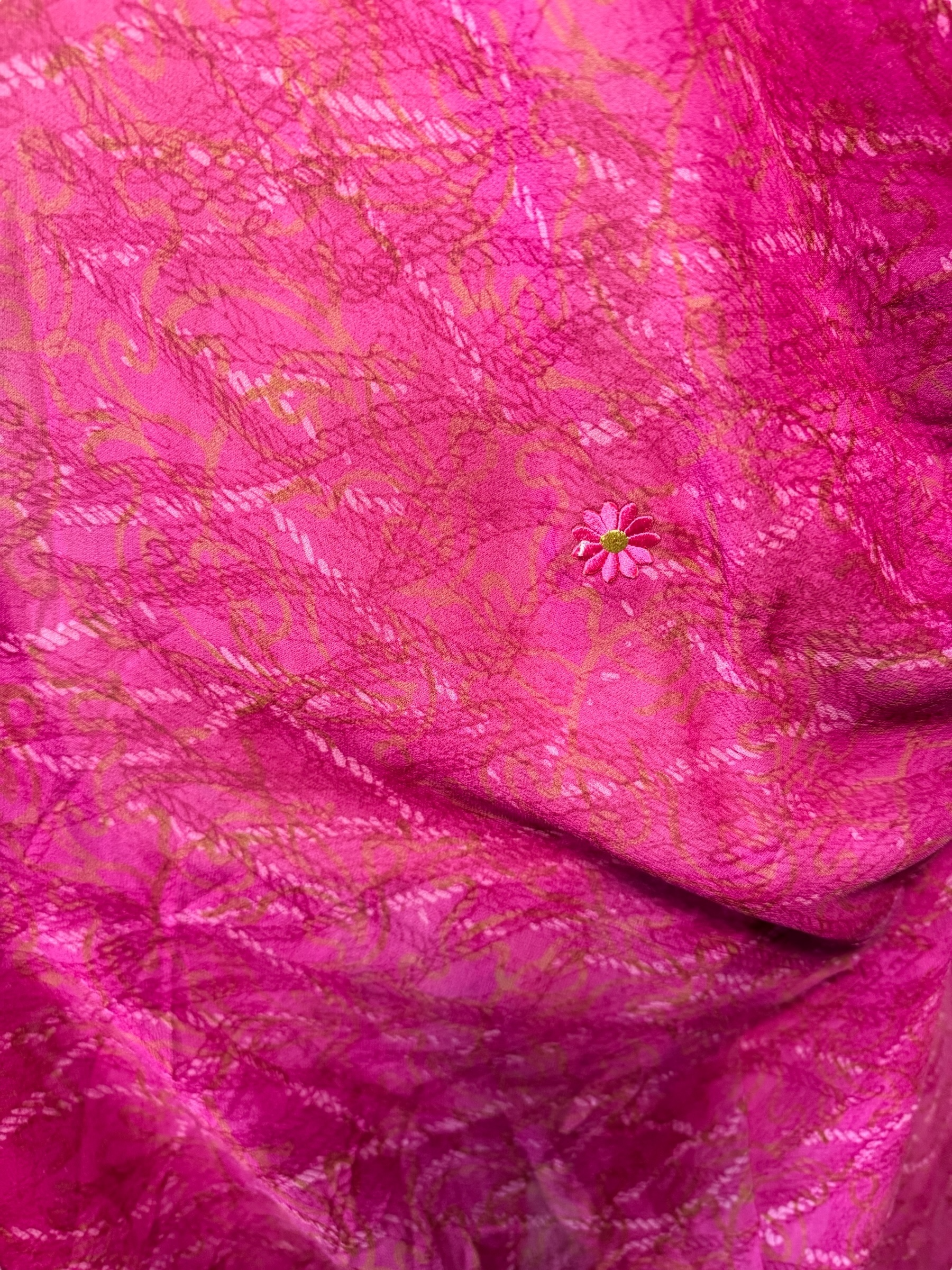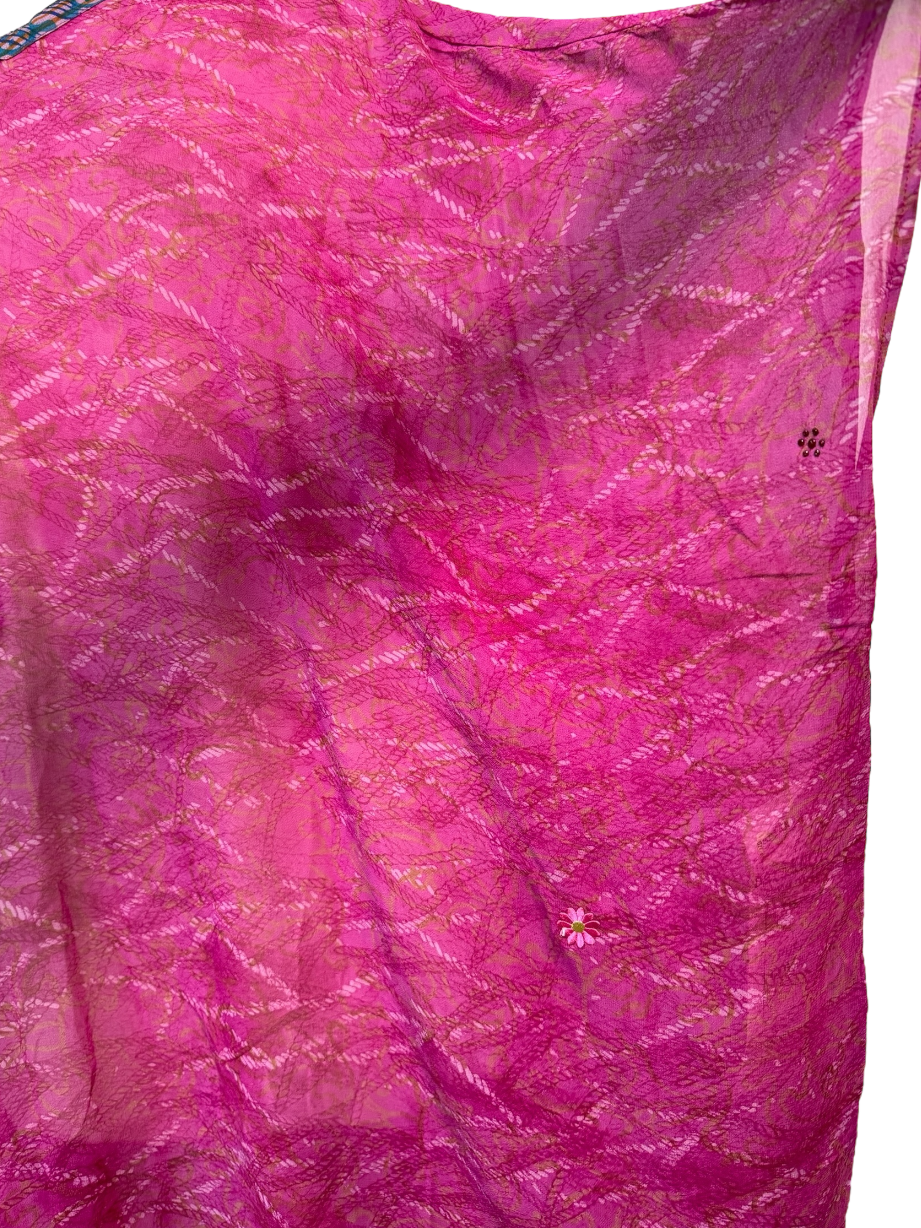 In Eastern philosophy, an Avatar is an incarnation that teaches how to evolve virtues of the past into the present. The Pure Upcycled Silk Avatar Collection is made from vintage pure silk saris, chosen and worn by women in the past to celebrate their lives.If you look very closely, you will see that the silks in this collection show some of the character of their previous incarnations through the appliqués that have been lovingly applied to bring new life to the fabric. This piece is a reminder that we are part of a collective journey to which we all add a little something.