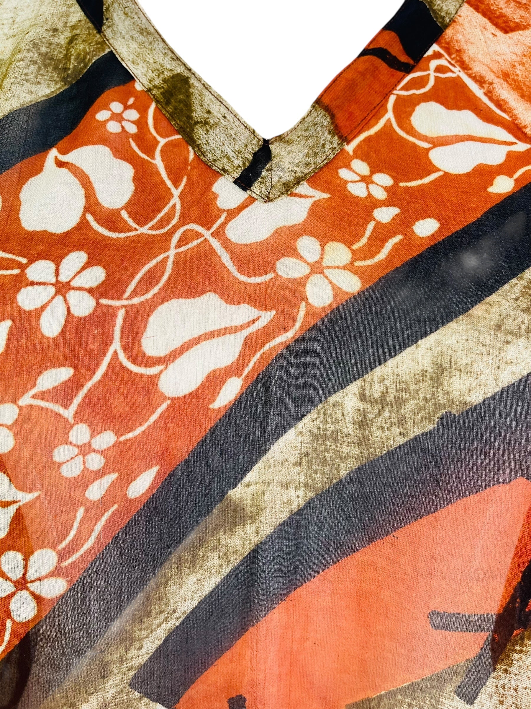 PRG7483 Sheer Avatar Pure Silk Midi Length Kaftan