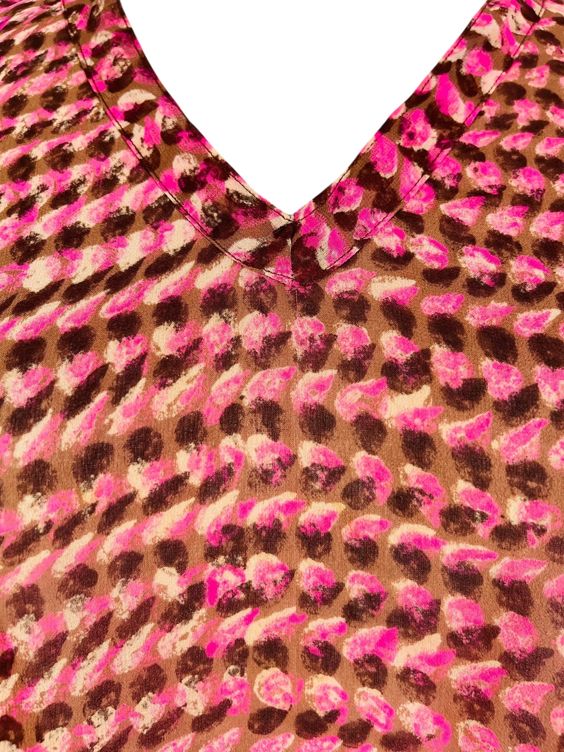 This midi-length kaftan brings style and sophistication to any occasion, from weddings to a beach day. Crafted from luxurious upcycled silk saris, the fabric has a beautiful flowing shape that flatters all body types. This kaftan dress can be worn as a single piece, or styled with pants for a fresh look. It's a one-size-fits-most item, so be sure to check the sizing chart for detailed measurements.