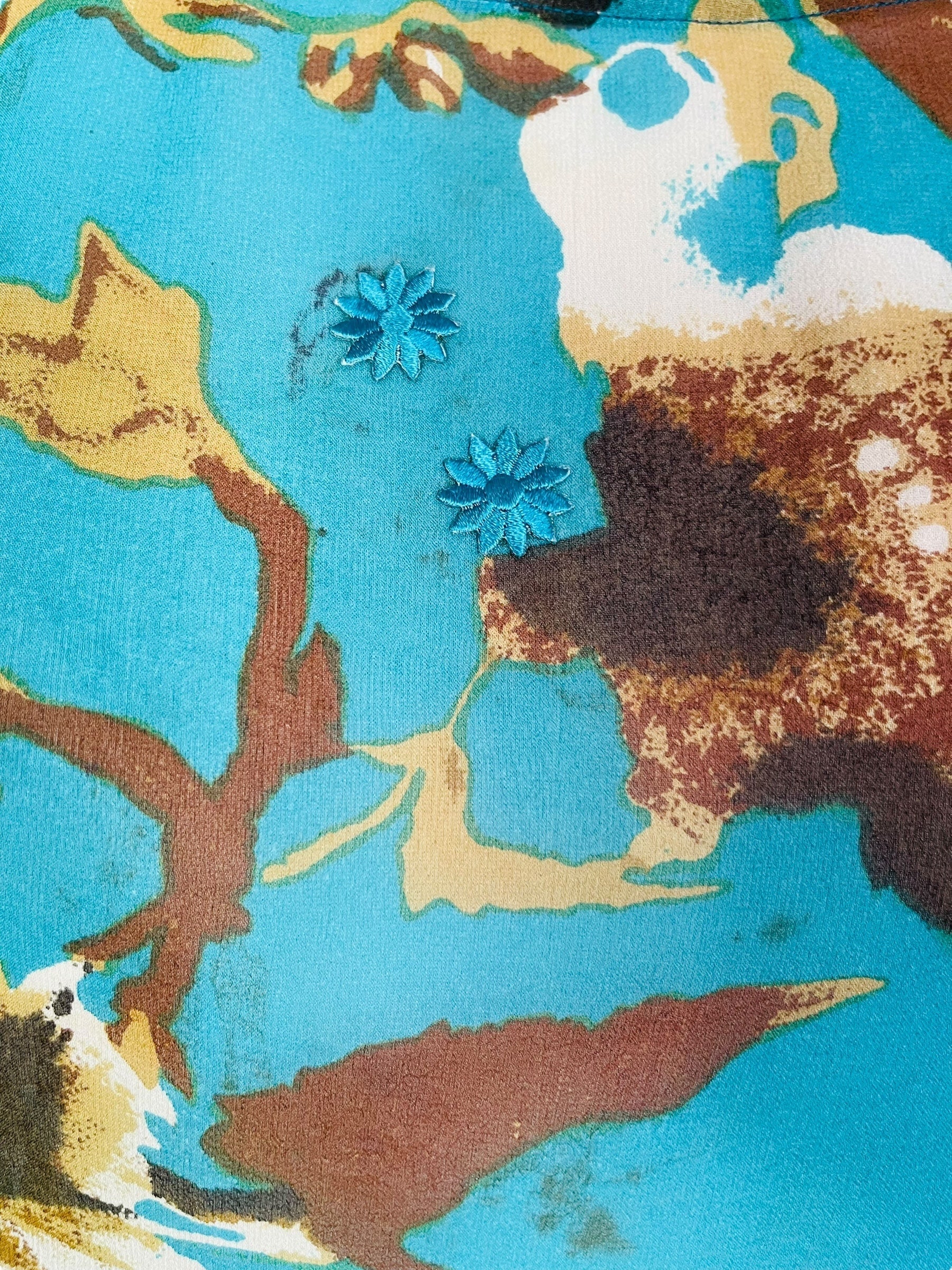 If you look very closely, you will see that the silks in this collection show some of the character of their previous incarnations through the appliqués that have been lovingly applied to bring new life to the fabric. This piece is a reminder that we are part of a collective journey to which we all add a little something.