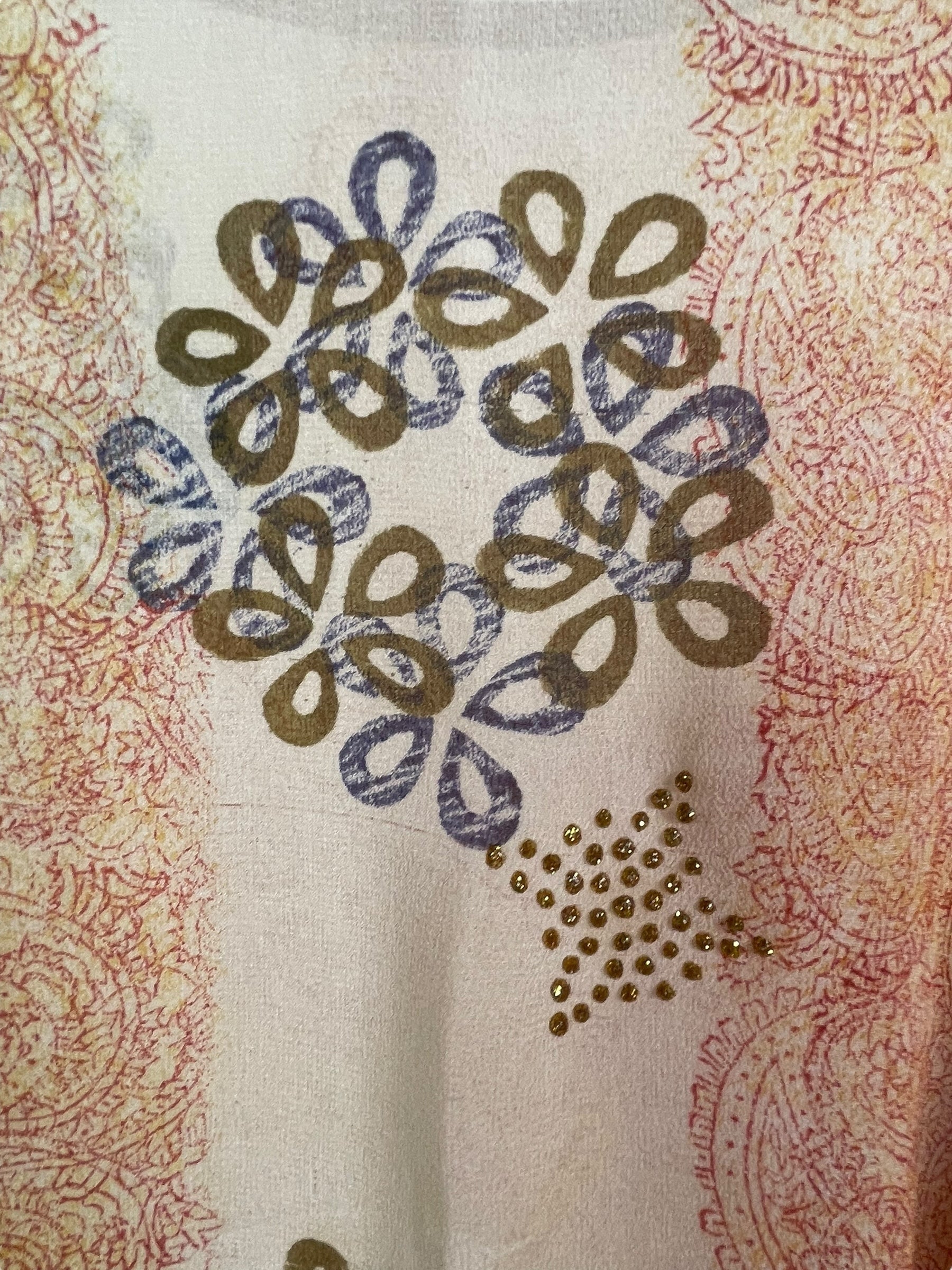 If you look very closely, you will see that the silks in this collection show some of the character of their previous incarnations through the appliqués that have been lovingly applied to bring new life to the fabric. This piece is a reminder that we are part of a collective journey to which we all add a little something.