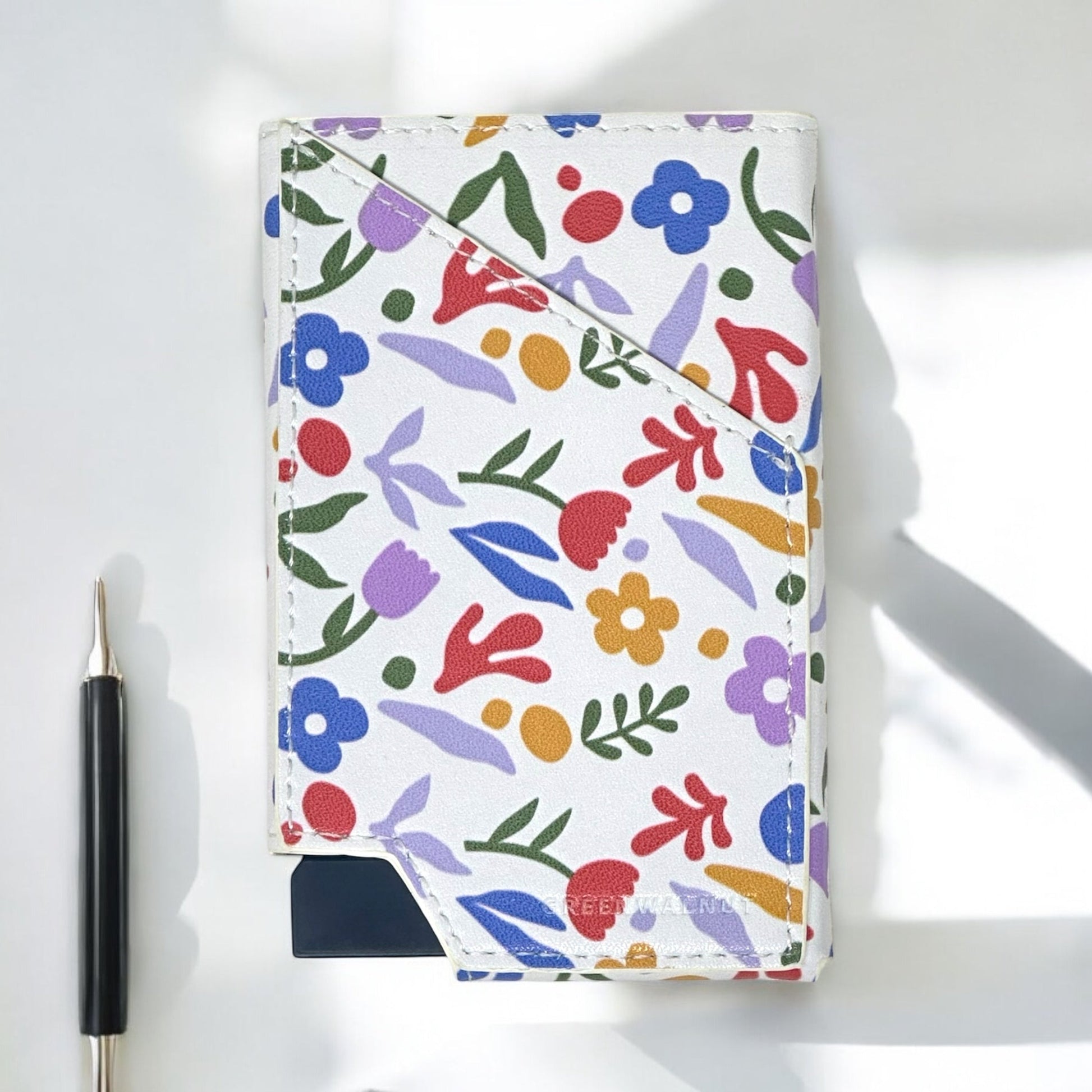 Bring a burst of color and effortless organization to your everyday carry with the Greenwalnut Floral Pop-Up Card Holder.