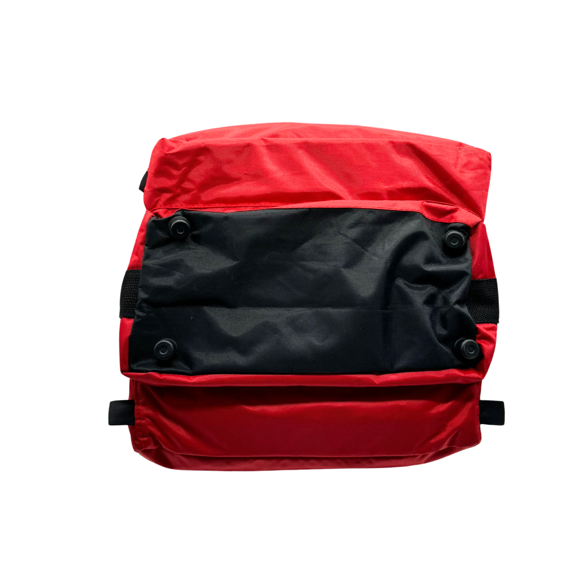 Front pocket includes multiple easy-access pouches, pockets, and elasticized loops for storage of supplies and instruments