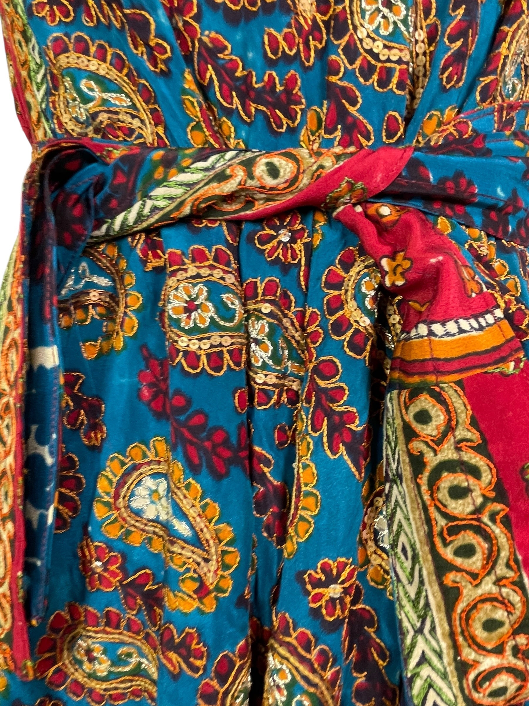 In Eastern philosophy, an Avatar is an incarnation that teaches how to evolve virtues of the past into the present. The Pure Upcycled Silk Avatar Collection is made from vintage pure silk saris, chosen and worn by women in the past to celebrate their lives.If you look very closely, you will see that the silks in this collection show some of the character of their previous incarnations through the appliqués that have been lovingly applied to bring new life to the fabric. This piece is a reminder that we are part of a collective journey to which we all add a little something.