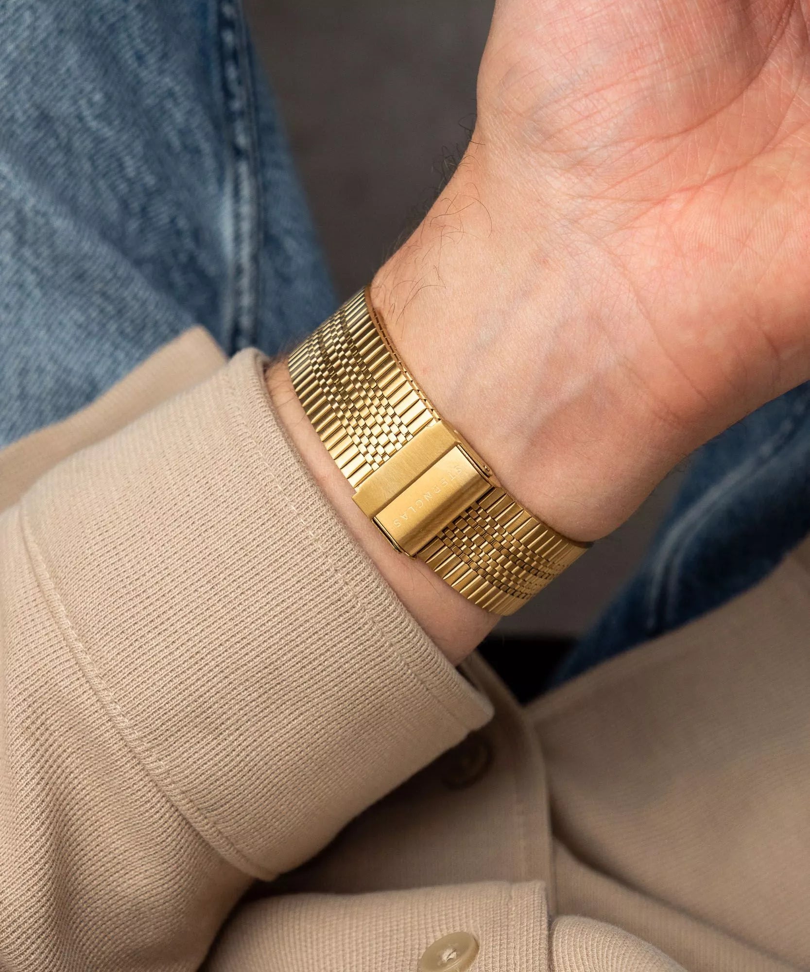 The Sternglas Hamburg S01-HH07-ME09 brings together German precision and modern elegance. Its 42mm gold-colored stainless steel case is paired with a vibrant blue dial, protected by a scratch-resistant sapphire crystal with anti-reflective coating. Super-LumiNova ensures excellent readability in low light, while the slim 6mm profile keeps the watch sleek and comfortable.