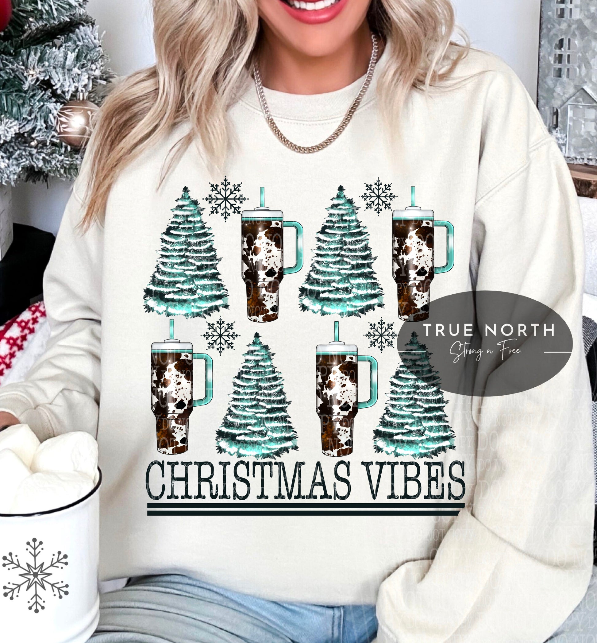 Sweatshirt or T-Shirt Christmas Cow Print With Trees Flaking Jumbo .