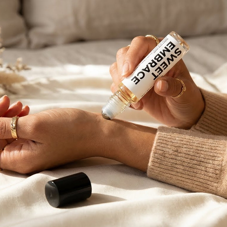 SWEET EMBRACE is a long-lasting sweet floral perfume oil that charms with its cozy, playful vibe. It opens with a bright hit of citrus, neroli, and bergamot, giving the scent an instant spark.