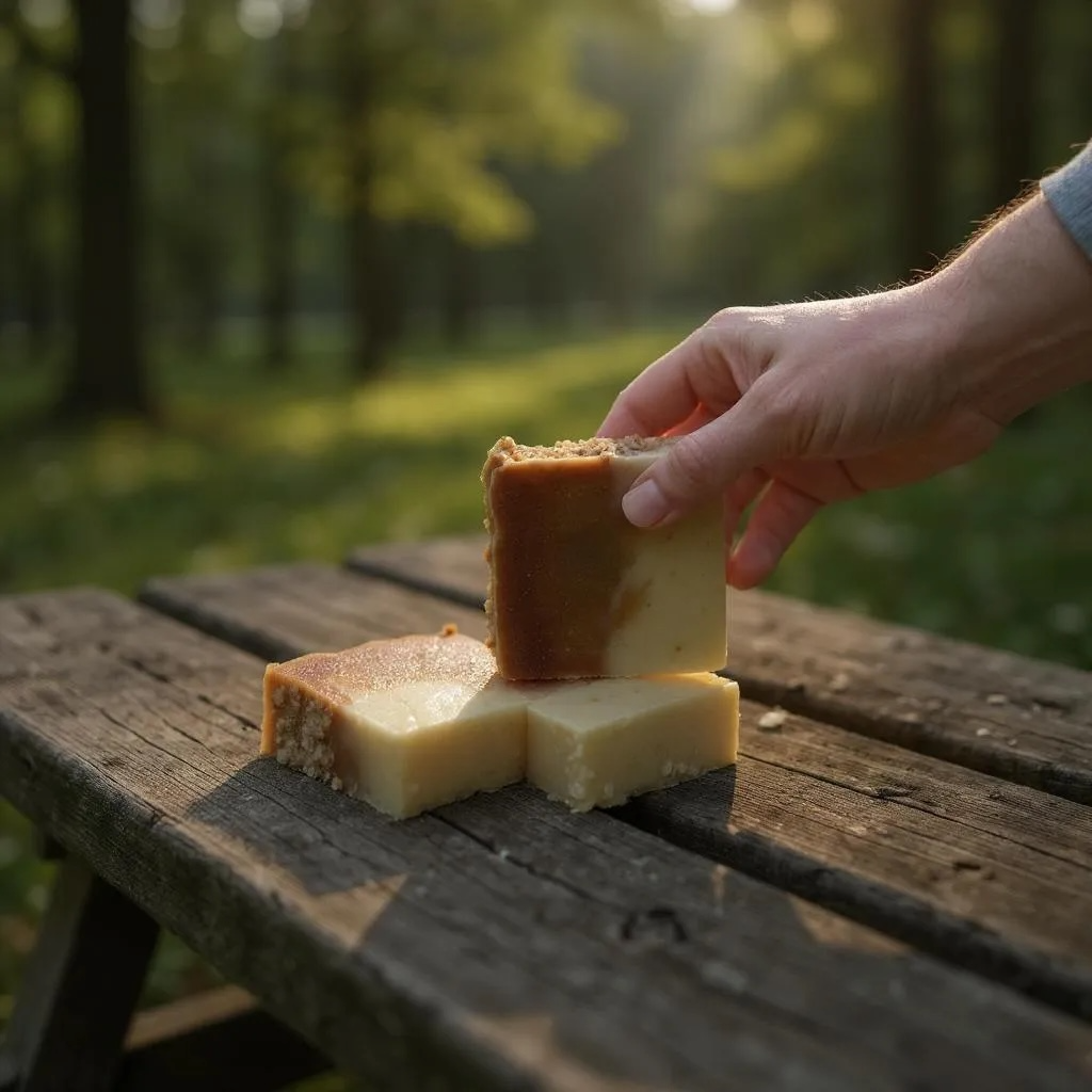 Turmeric and oatmeal soap offers benefits such as anti-inflammatory and antioxidant properties from turmeric, which helps soothe skin, reduce acne, and even out tone. Oatmeal acts as a gentle exfoliant and moisturizer, removing dead skin cells, relieving dryness and irritation, and promoting a smooth, radiant complexion. This soap is particularly beneficial for dry, sensitive, and irritated skin, helping to calm itching and redness.