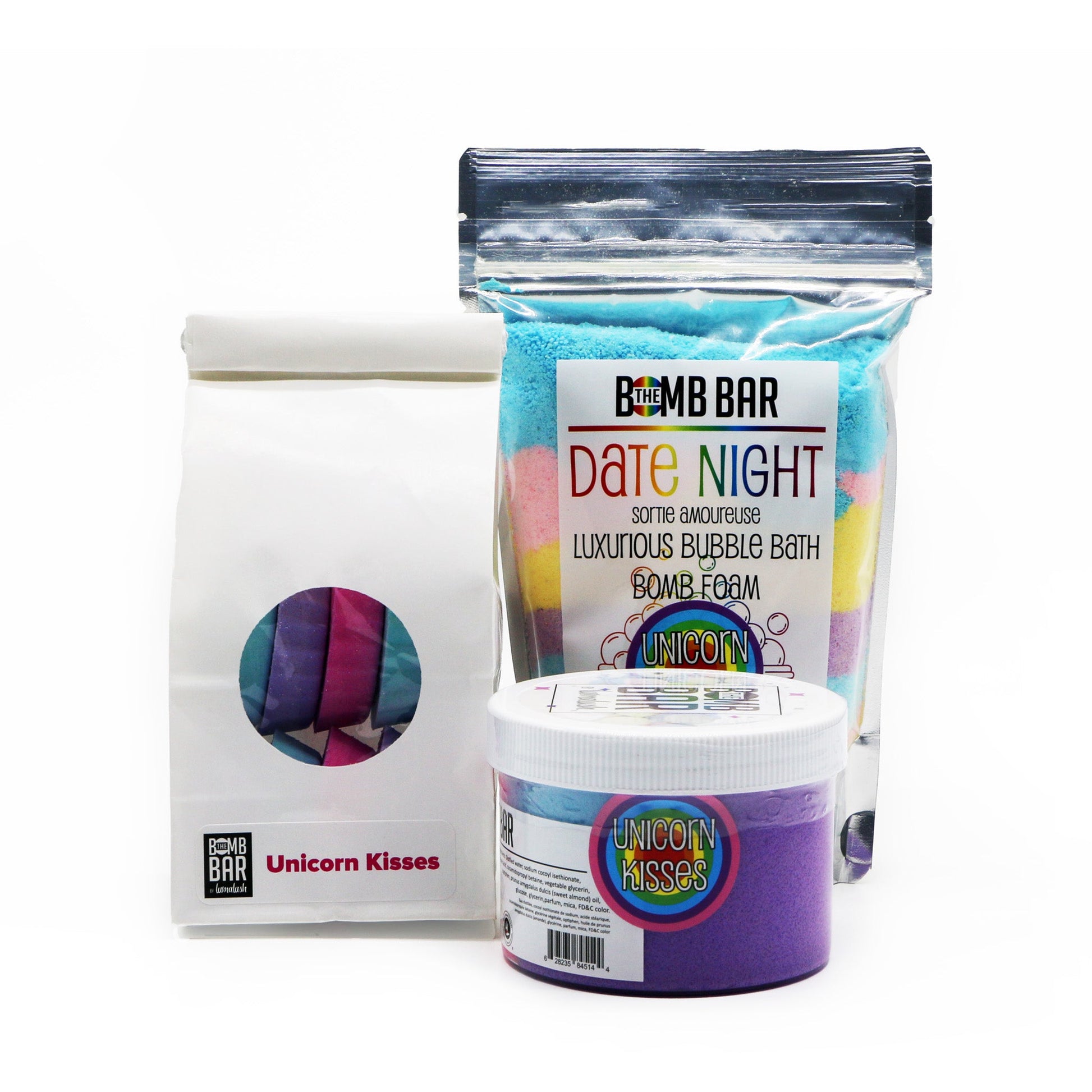 Be mystical, be magical....kiss a unicorn! Have some fun with this fruity and florally fun bundle of our luxurious bath foam, sugar scrub and bath bomb cookies.
