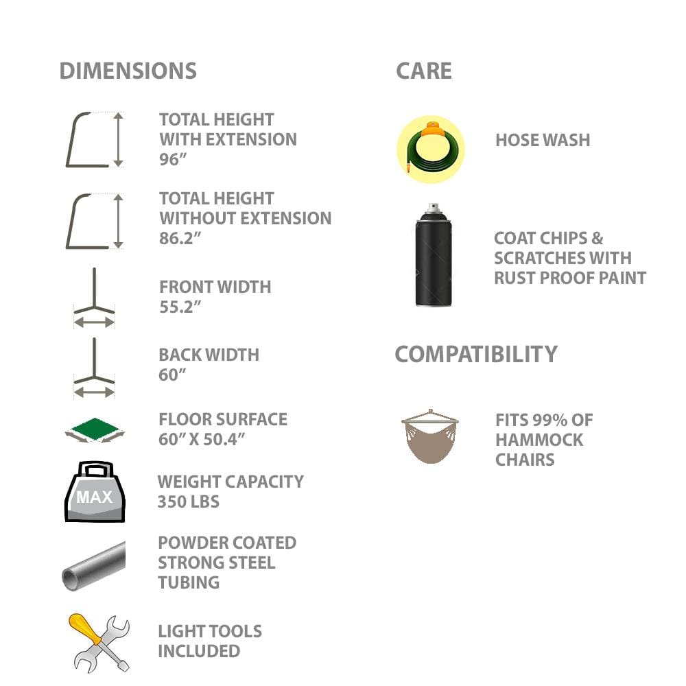 What's Included | Hammock Chair Stand - 1 Extension - 2 S-hooks - 1 Chain |