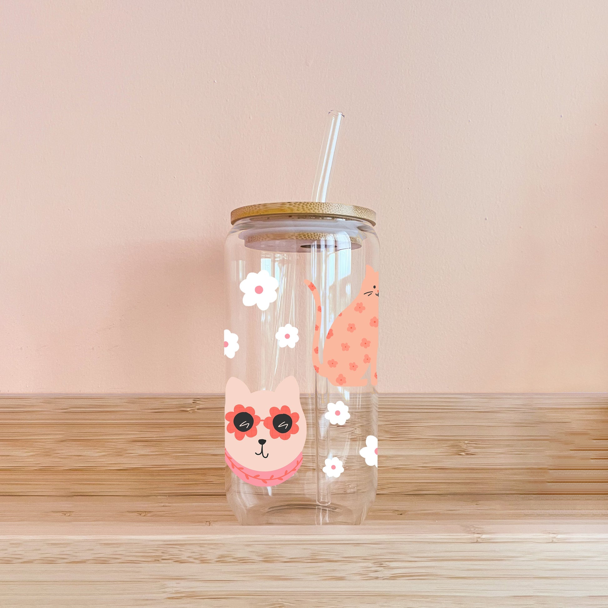 🌸 Verre 16oz avec couvercle en bambou et paille en verre