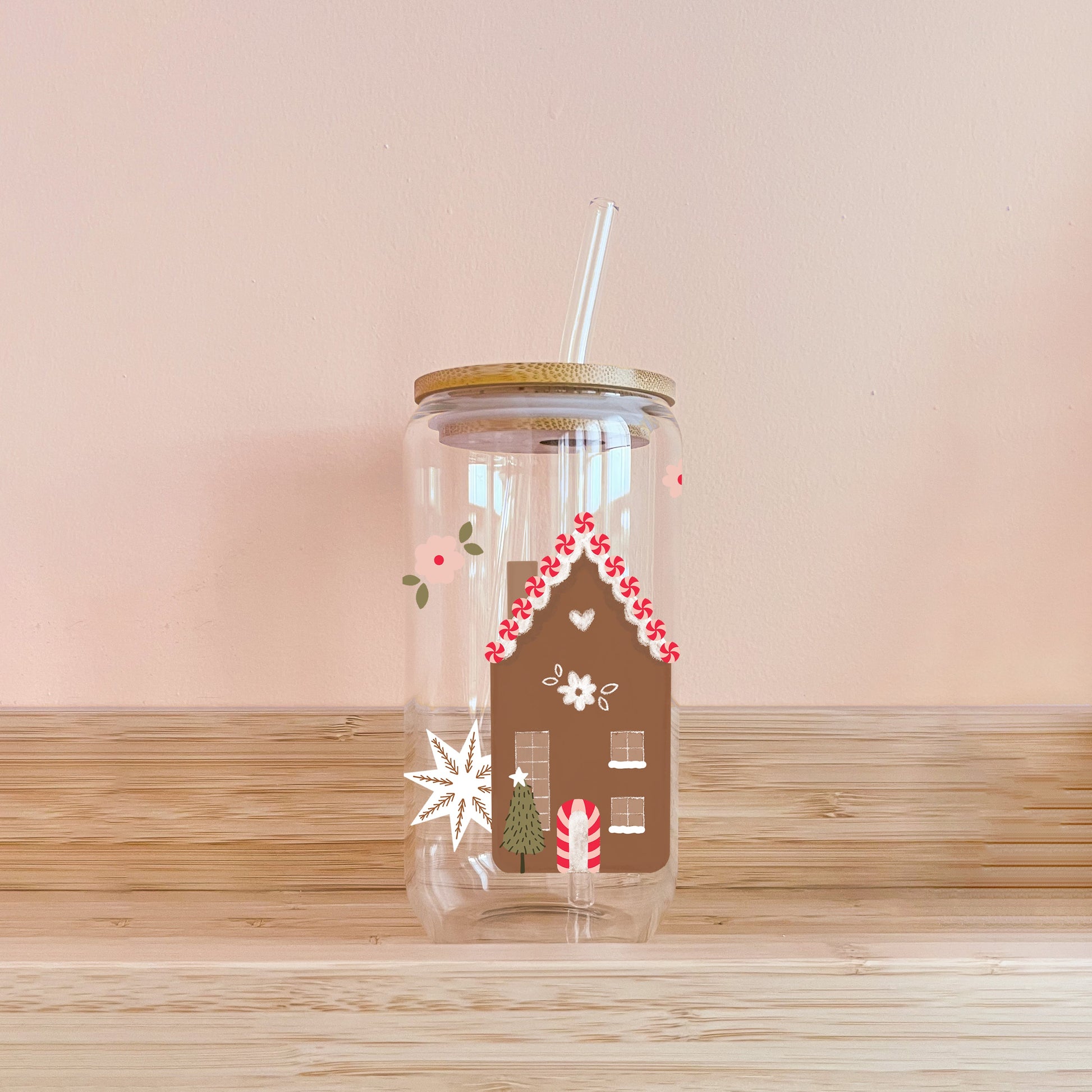 Verre format de 16 oz avec une illustration de Noël en UV DTF.