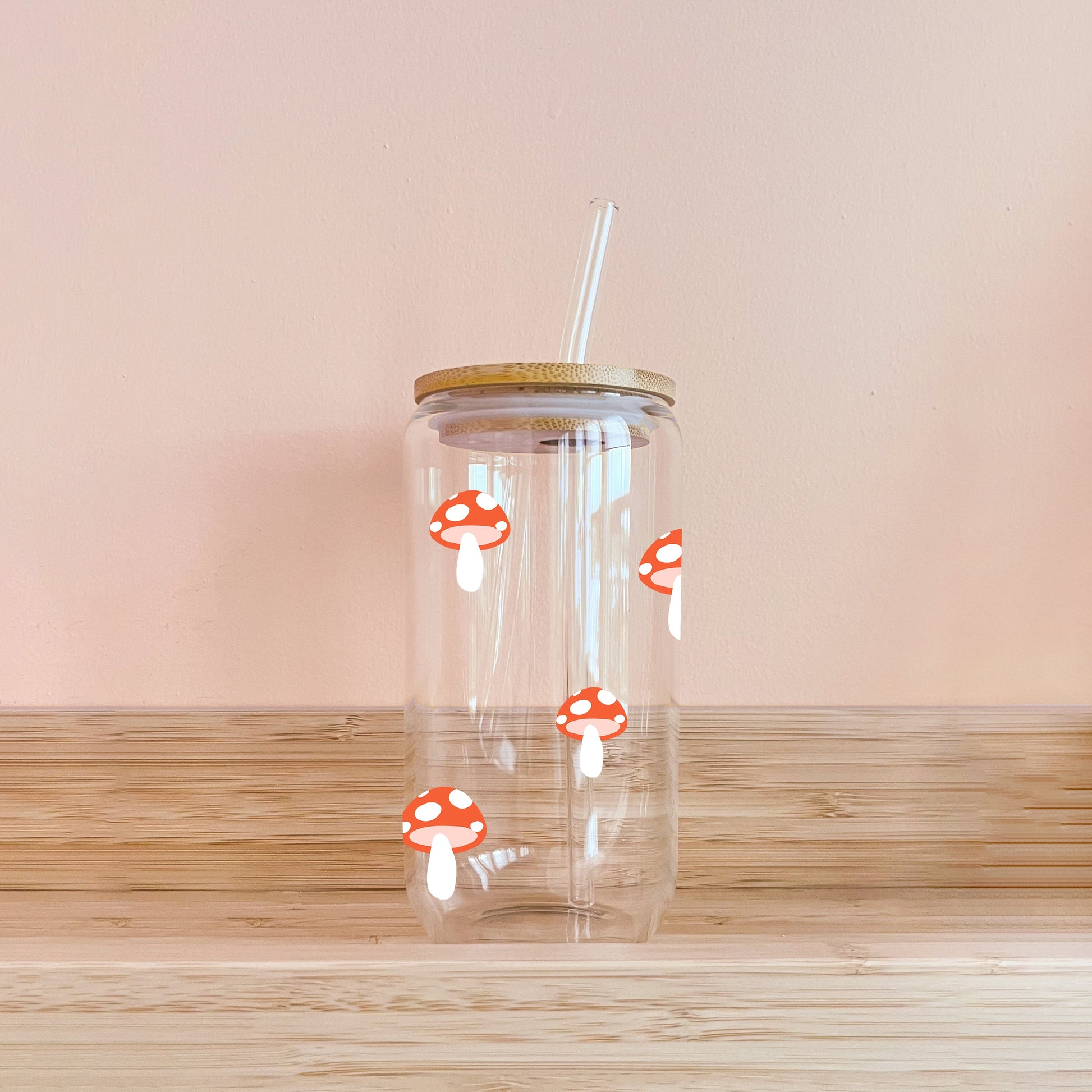 🌸 Verre 16oz avec couvercle en bambou et paille en verre