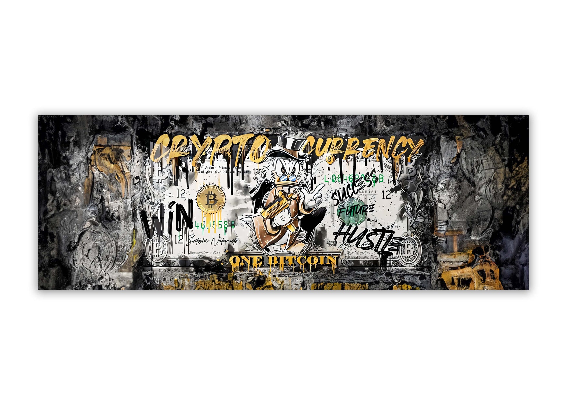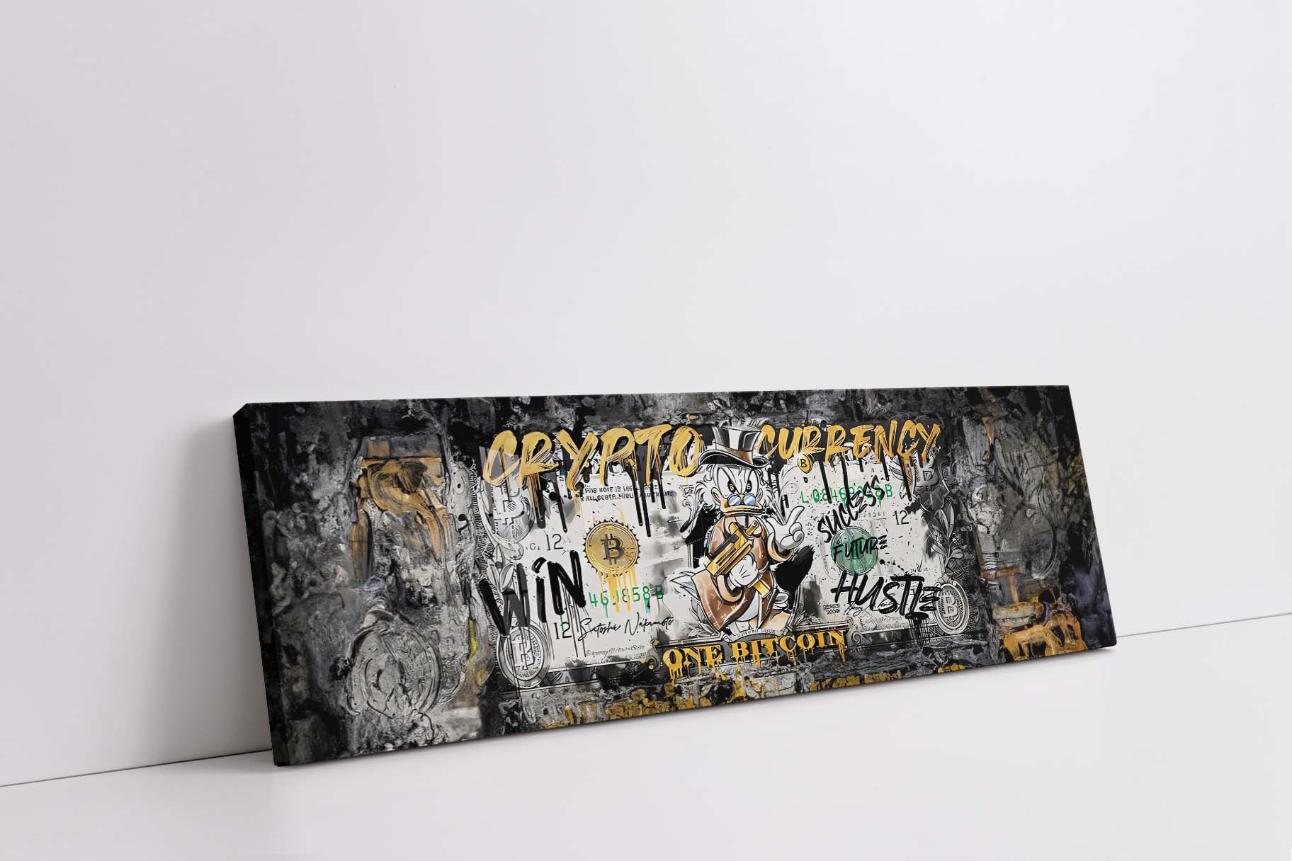 Transform your space with this eye-catching Bitcoin Pop art on canvas. With an attractive image combining one of the world's major currencies and a popular cartoon character, it adds a playful touch to your decor while sparking an interesting conversation about international finance. Plus, the high-quality canvas ensures long-lasting vibrancy.