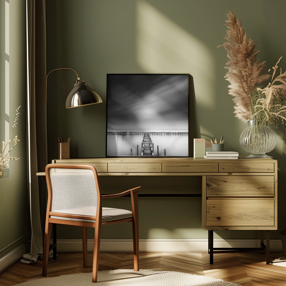 Wall art By the Sea 012 by George Digalakis. black and White Harbour panorama. Unrivaled quality for discerning decorators—crafted with high-end materials, solid wood frames, and expert varnish sealing, these canvas prints stand apart from ordinary wall art.