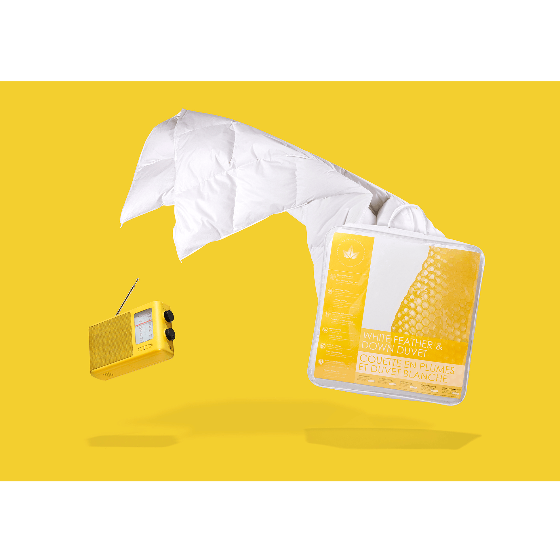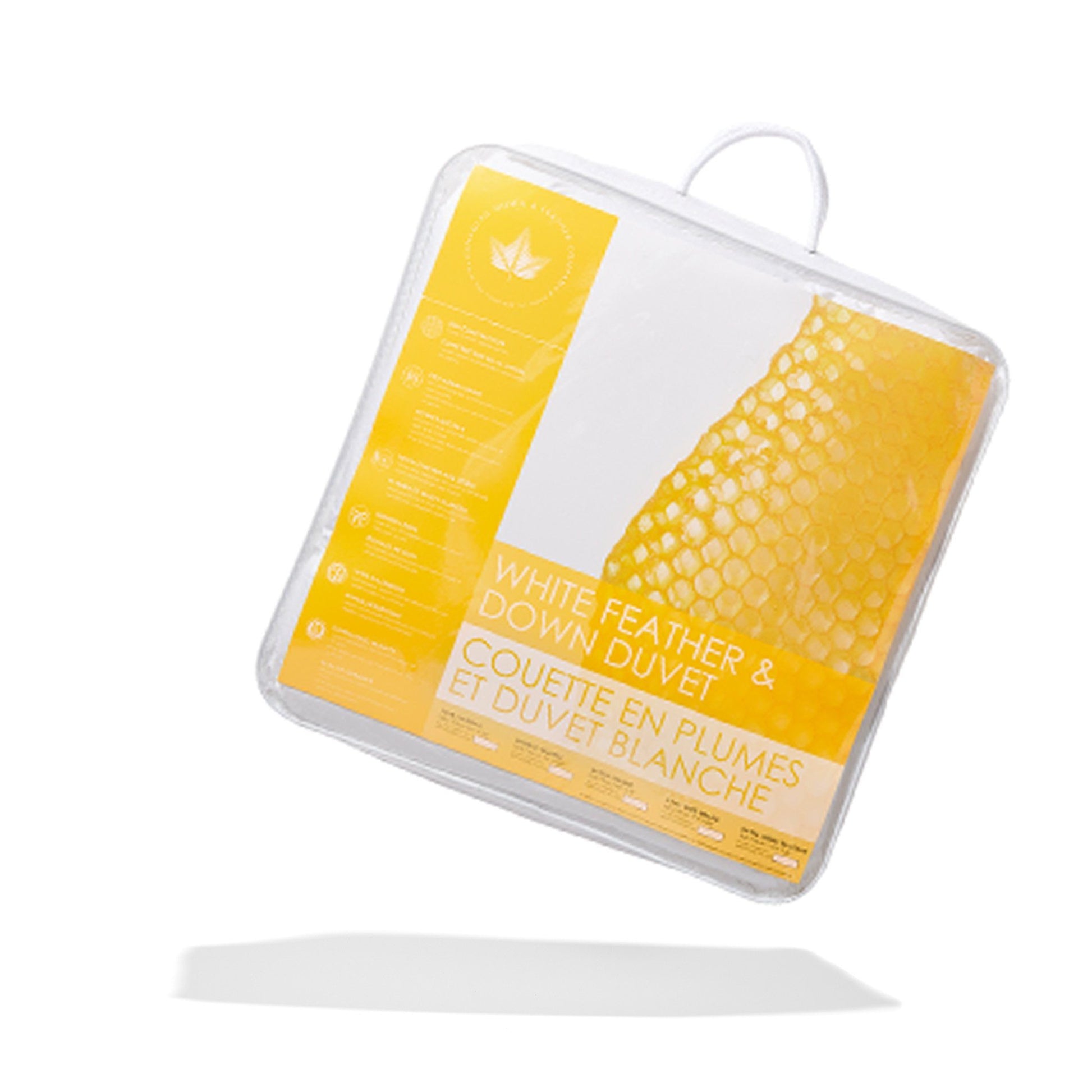 - White Feather & Down: Bright white appearance with blend of Feather (80%) and Down (20%) for enhanced loft and warmth
