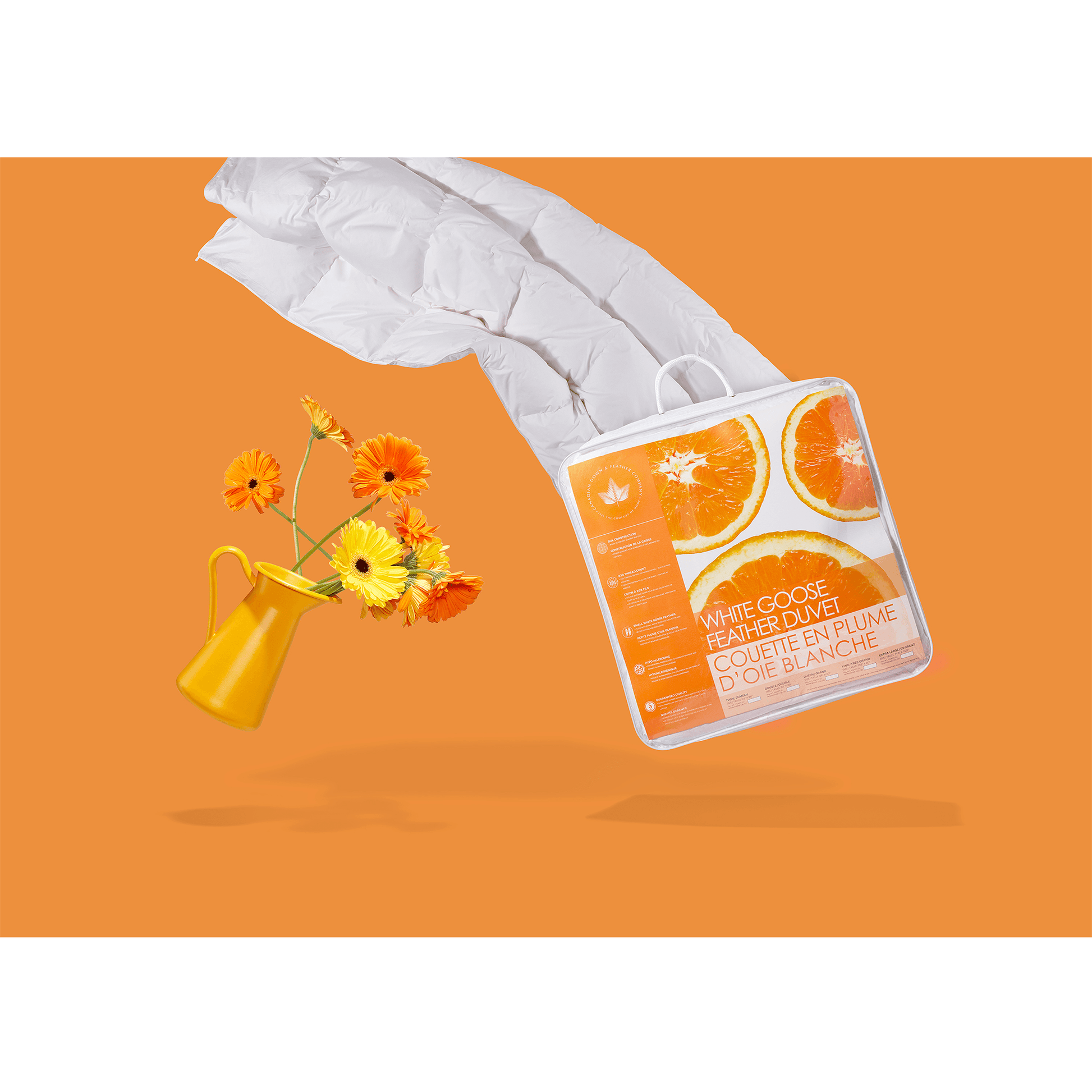 - White Goose Feather: Filled with small white goose feather to provide better lofting and insulation.