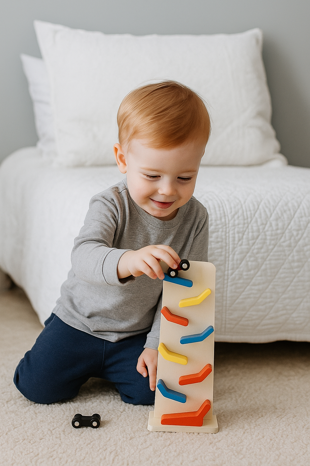 SAFETY FIRST: Our toddler race track was designed to boost children’s reasoning capacities in the safest possible ways: it has smooth edges, water-based non-toxic paint. Recommended for children above 3 as the cars may impose a choking hazard.